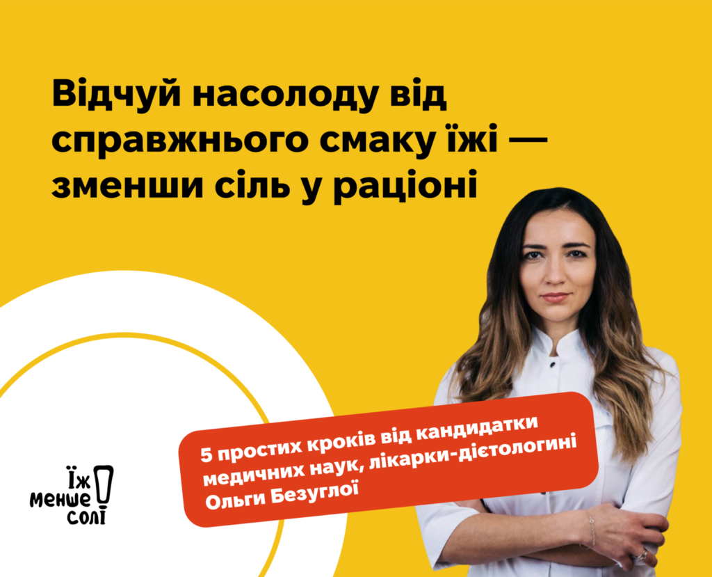 Пропонуємо 5 простих кроків, які допоможуть тобі скоротити споживання солі вже сьогодні, від кандидатки медичних наук, лікарки-дієтологині Ольги Безуглої Dr.Bezugla instagram dr.bezugla